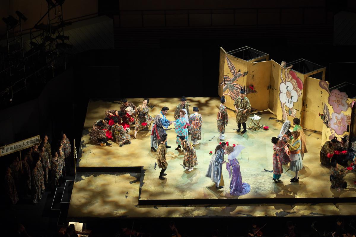 オペラ・ファンとして一番インパクトがあったのはやはり日本語とイタリア語の併用です。過去には勿論、そして今でもオペレッタ等で、台詞が日本語で歌は原語という場合はありますが、今回の《フィガロの結婚》はもっとはっきりした意図に基づいて原語(イタリア語)と日本語が併用されています。物語は長崎を舞台に、黒船に乗って西洋人が到来します。地元の人達はびっくり!そして長崎に住むようになった伯爵夫妻の館で起こる騒動のストーリーはもちろん原作通りなのですが、西洋人つまり、アルマヴィーヴァ伯爵、伯爵夫人、ケルビーノの三名がイタリア語。それ以外の登場人物達は基本的には、西洋人と会話する時はイタリア語、それ以外は日本語です。そして多くのレチタティーヴォはチェンバロ伴奏で歌われるのではなく、演劇的な台詞として語られます。ドン・バルトロの「ああ、復讐だ」も日本語で歌われますし、バルバリーナの「無くしてしまった」も日本語の歌唱。フィガロやスザンナのアリアはイタリア語でした。全部が音楽として歌われると思って観に来たらビックリしてしまいますが、お芝居としては大変よく練られた仕上がりで、イタリア語と日本語の使い方が内容とちゃんと合っています。日本語字幕と台詞は野田秀樹作。