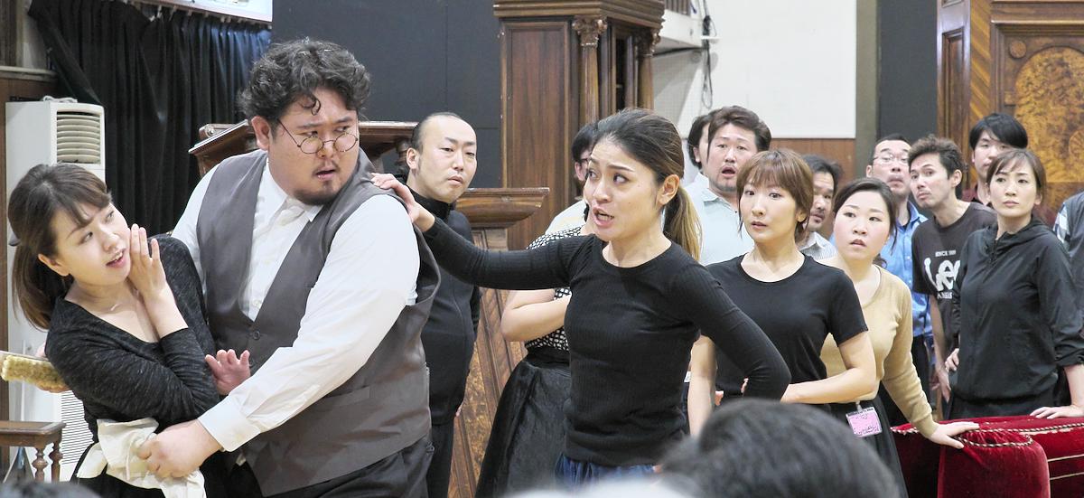 立ち稽古が行われている、都内某所の稽古場にお邪魔して、その魅力の一部をチラ見して来ました。ソリストと合唱に、フロッシュ役のイッセー尾形さんが加わってのお稽古です。