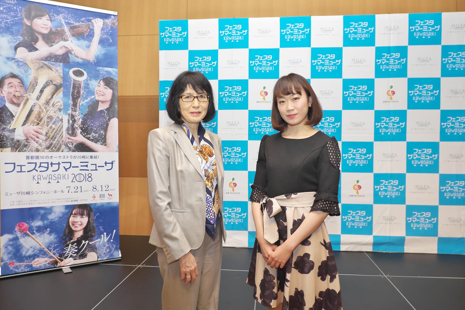 穏やかな春の陽気に包まれた3月28日、ミューザ川崎の市民交流室にて「フェスタサマーミューザKAWASAKI 2018」の、ラインナップ記者発表会が開かれた。壇上には福田紀彦川崎市長のほか、ホールアドヴァイザーとして秋山和慶氏(指揮者)、佐山雅弘氏(ジャズピアニスト)、松居直美氏(オルガニスト)の3氏、吉井實行氏(日本オーケストラ連盟専務理事)、大野順二氏(東京交響楽団専務理事・楽団長)が上がり、和やかな雰囲気の中、プログラムの発表や解説が行われた。